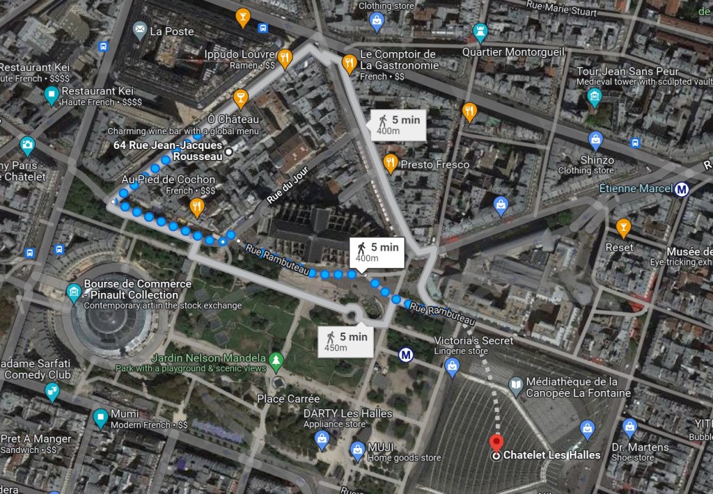 The nearest Metro is the huge Chatelet-Les Halles (maybe Europe’s largest), where many subway lines would intercross. The RER A has a direct connexion to both airports (circa 1h both for Orly and for Charles de Gaulle, 12€/person). Actually, on your way to Orly you need to hop on the automated Orlyval, which will take you along the last leg (1mn connexion, 5mn ride). Sometime, the RER is quicker than a cab, especially with the airport queues.