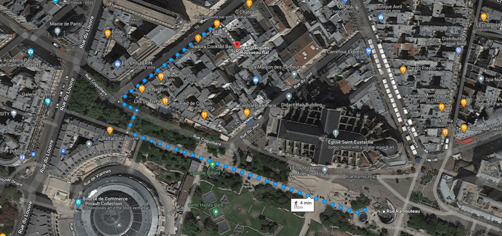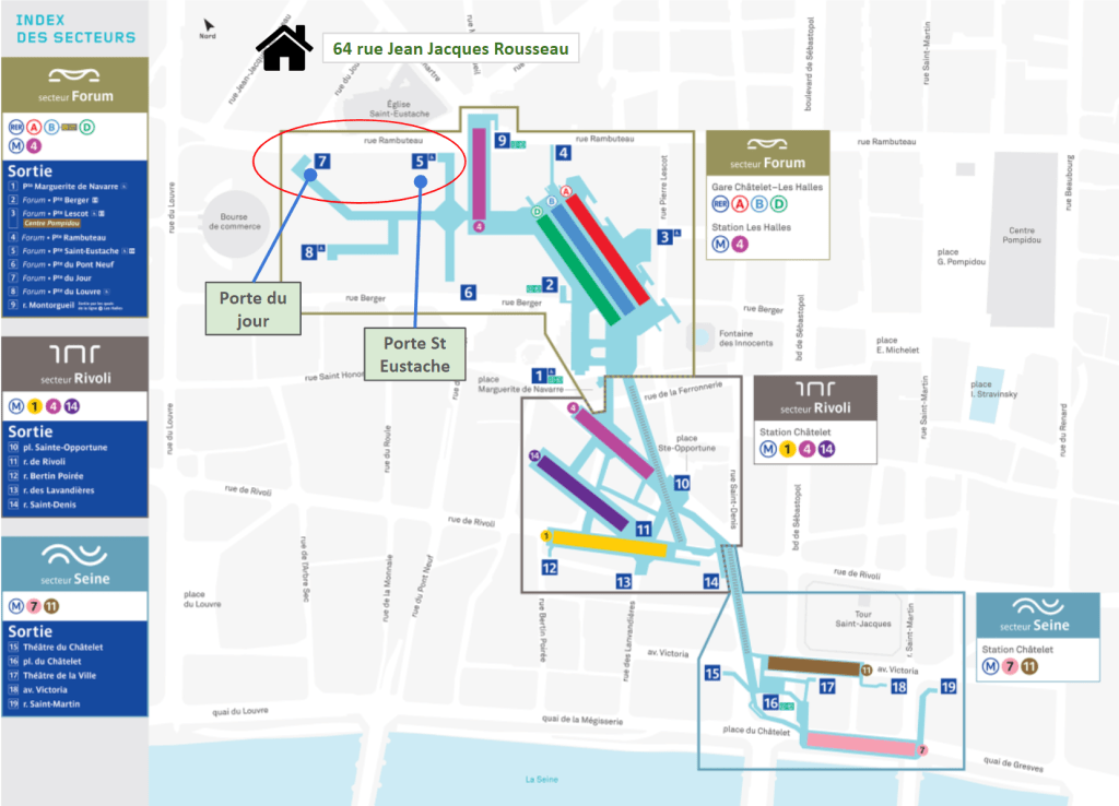 If you do make it to exit N°5 Porte St Eustache, you’ll only be 5mn away from your flat, and the walk along St Eustache Church’s gardens is quite nice.