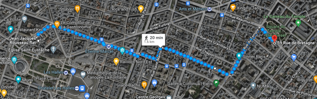 Only 20mn away, passing by Paris’ oldest house (Maison de Nicolas Flamel, 1397) 59 Rue de Bretagne, 75003 Paris